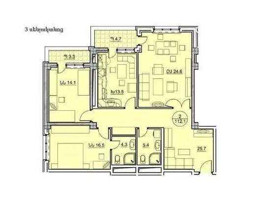 3 комнатная квартира, Нерсисян ул туп., Канакер-Зейтун (Ереван)
