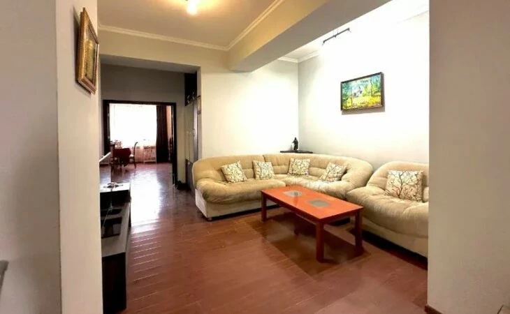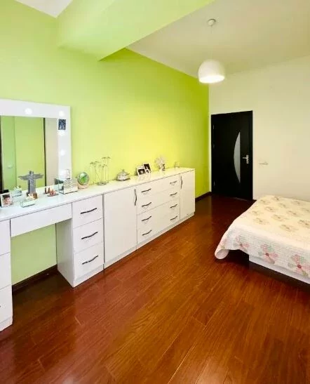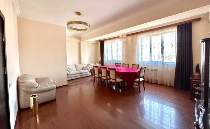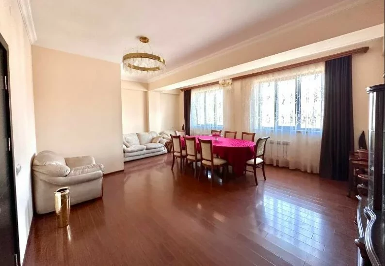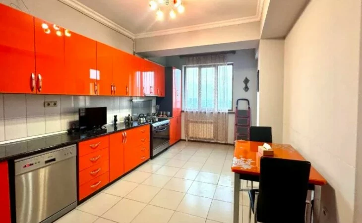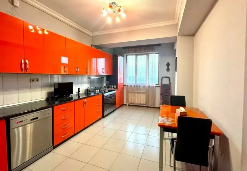Площадь: 140 кв. м. Квартира включает просторный холл и коридор, гостиную, отдельную большую кухню, 3 спальни, 2 ванные комнаты, 3 открытых балкона. Квартира трехсторонняя, очень светлая, с балконов открывается прекрасный вид на город, улицу, двор и парк ЭРАЗ. Другие здания не загораживают вид.