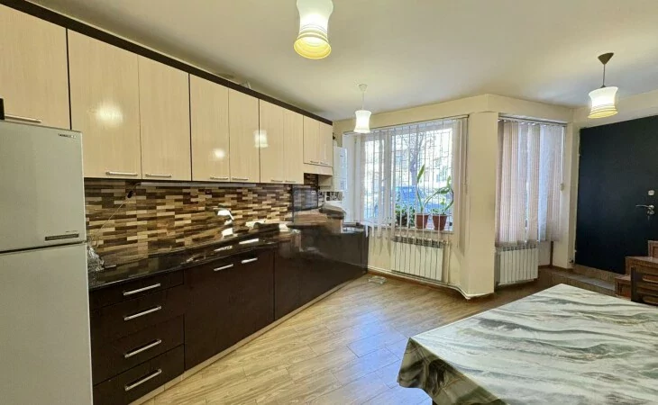 Продается коммерческая многофункциональная недвижимость на одной из лучших улиц города, рядом с парком Сарьяна. Помещение расположено на 1 и 2 этажах, площадь 103 кв.м. и отремонтированный подвал площадью 60 кв. м. которые можно сдавать в аренду отдельно. Во дворе имеется парковка. Очень хорошо подходит для офиса, клиники и т.п. Высота потолков на первом этаже 2,8 м. и 2,3 м на 2 этаже. Стены между двумя этажами нельзя убрать, чтобы создать открытое пространство. Ранее оно использовалось как офис. Рядом находится вся общественная инфраструктура.